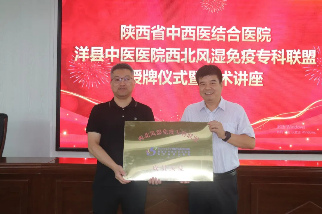 与此同时,陕西省中西医结合医院(西安市第五医院)与洋县中医医院“西北风湿免疫专科联盟”揭牌仪式顺利举行。副院长黄小强表示,医院将继续发挥特色专科引领作用,整合区域内医疗资源,推动医联体建设,为当地人民群众提供更加优质、便捷的医疗服务。