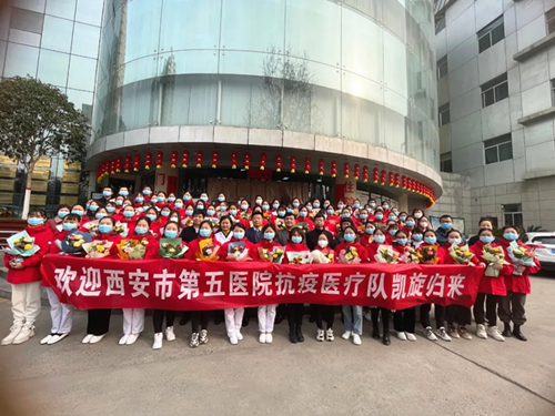 天使披甲,踏雪逆行;千里战“疫情”,携春归来。2月14日下午,西安市第五医院驰援西安市新冠肺炎定点收治医院医疗队80名队员不辱使命,圆满完成了医疗救治任务,凯旋回归。