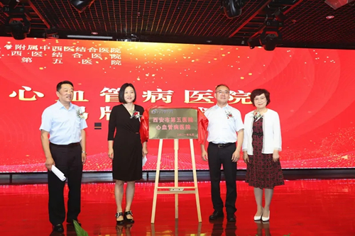 空军军医大学第一附属医院心血管内科主任陶凌教授,西安市第五医院院长、党委副书记冯占伟,党委副书记、副院长贾强与西安市第五医院心血管病医院院长职利琴共同进行了揭牌。