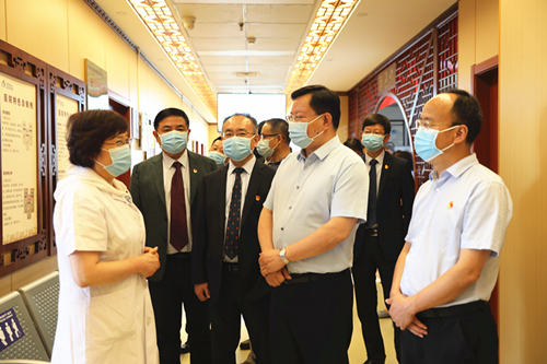 会后,领导一行来到国医馆,视察指导“职利琴创新工作室”,关切的询问医院中医内涵建设和高层次人才培养情况。随后参观我院党史展,指出干部职工要积极参加党史学习教育,紧跟党的步伐,听从党的指挥,围绕医院建设中心点,立足“大专科、强综合”的发展定位,培育建设临床重点专科和特色专科,以中医优势专科专病为重点,通过构建名医诊疗平台,进一步推动市级中医学术流派、名中医工作室建设,努力建设群众满意,特色鲜明的国家级中西医结合医院。