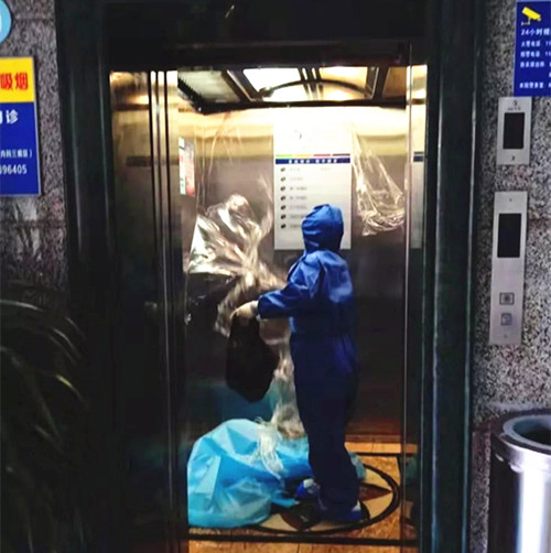 钟南山院士在抗疫防护建议中提到,电梯间是疫情传播的高危地区。动力科根据院感工作要求,除每日坚持定时严格电梯消毒外,借鉴先进经验,采用每两小时更换电梯按键贴膜的方式,既解决了按键消毒不便的问题,又加强了对电梯原件的保护。为满足留观病区医废、物资等特殊转运,根据运送需求,加班加点完成住院综合楼客梯轿厢整体贴膜,加强电梯表面防护,方便消毒工作,加强安全保障。