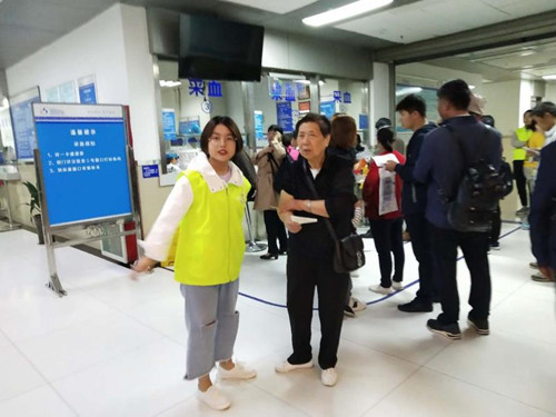 9月25日上午,中秋节小长假刚结束,医院迎来了就诊患者的“小高峰”,门诊导医压力非常大,面对这种情况,团委积极发挥自身优势,紧急号召医院五色花志愿者服务队的青年团员志愿者们前往门诊大厅维护就医秩序。早上8:30,着装统一的青年志愿者们已经在门诊便民利民志愿者服务站前集合,经过简单培训,志愿者们分头开展活动。在医院门诊大厅、检验科、电梯旁等这些患者较多的地方,都活跃着青年团员志愿者的身影。志愿者们积极的为老弱及行动不便的就诊病人排队挂号、检查、收费、取药,协助年老体弱、行动不便的病人转送其他科室,为就诊患者向导引路,介绍各科医疗专家及各科特色服务项目。在短短两个小时内,志愿者们热情地引导患者就诊、维持现场秩序,有效缓解了就诊压力。