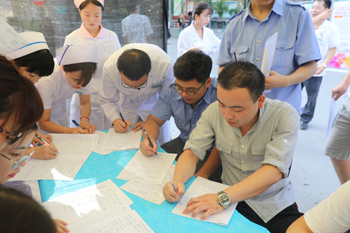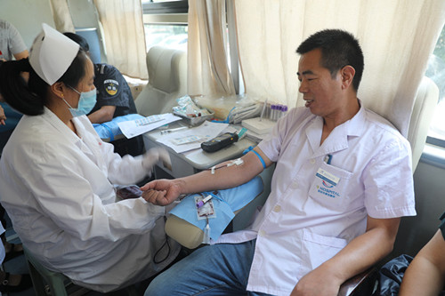 为缓解高温季节临床用血紧张状况,积极响应西安市卫计委开展的“为他人着想捐献热血 分享生命”无偿献血月活动。8月9日上午,西安市第五医院在西安市中心血站大力协助下,由医务科和输血科组织开展了无偿献血活动,百余名医务工作者纷纷踊跃献血,用实际行动践行医者仁心。