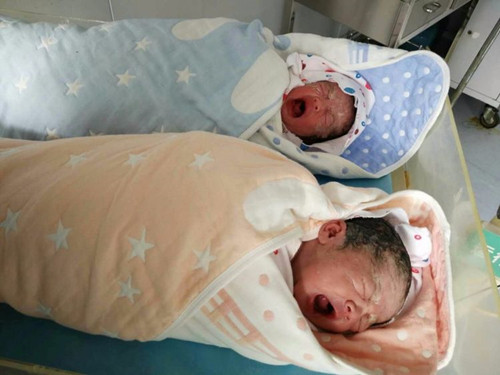 手术前,医务科副科长郑霞特地到麻醉科了解手术情况,评估麻醉风险,做各方面的协调工作。检验科曹团平副主任也与麻醉科沟通,术中如果突发情况,他们会在第一时间保证用血,确保病人安全。在麻醉科、手术室、输血科的全力配合下,党赛利主任带领副主任医师李翠梅、高媌、主管医生郭维娟,开展了一场高风险精准手术。从手术开始到新生儿断脐,用时4分40秒。整个手术就像一场接力赛,每个人都全力以赴,每一个环节都要求完美对接,精、准、稳。手术顺利结束,一对可爱的龙凤胎降临人间,产妇生命体征平稳。