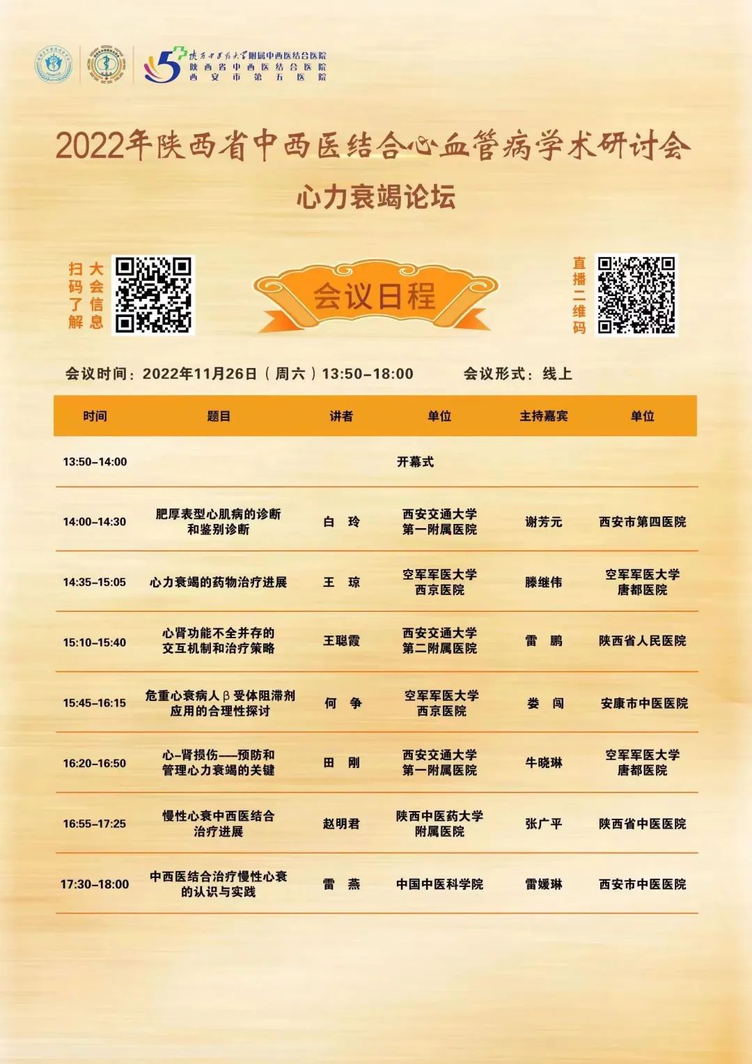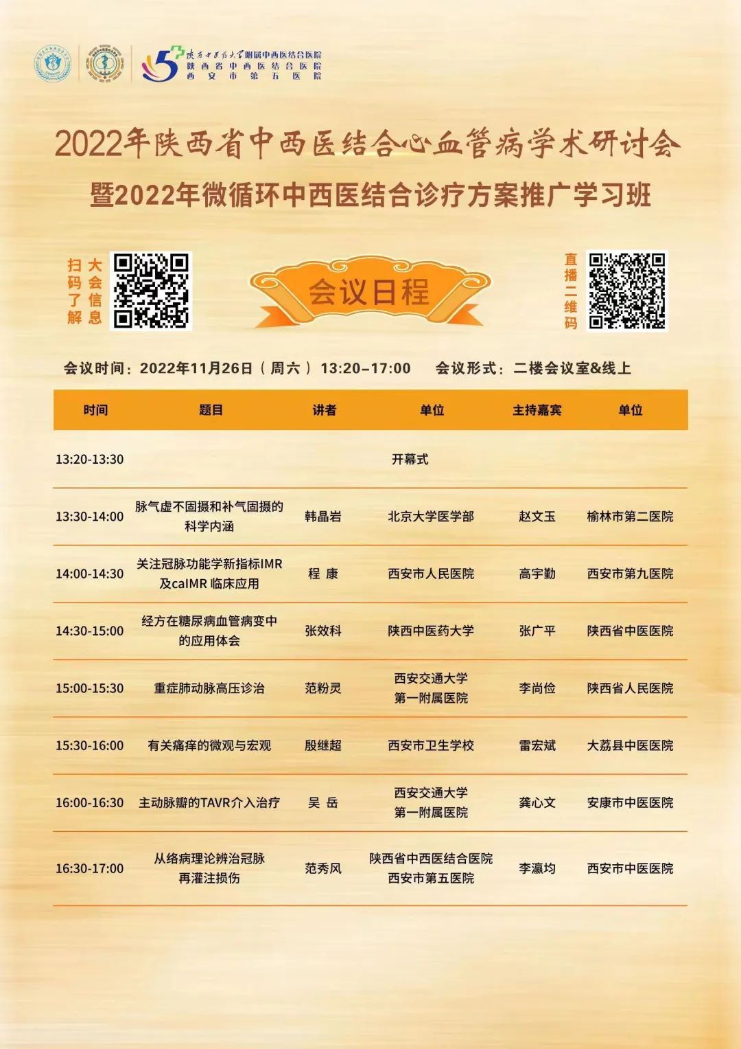 硕果累累迎冬来,古城曙色迎贵客,由陕西省中西医结合学会、西安市中西医结合学会联合主办,西安市第五医院暨陕西省中西医结合医院承办的“2022陕西省中西医结合心血管病学术研讨会”召开在即。