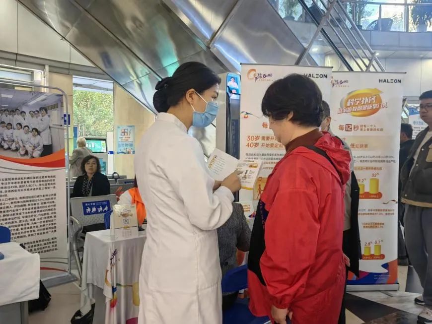 西安市第五医院骨质疏松科于 2023 年 10 月20 日上午 8:00开展骨量筛查及健康科普义诊活动。活动现场,医务人员耐心向广大群众普及骨质疏松健康知识,讲解骨质疏松的高危人群、发病原因,如何预防及治疗。
