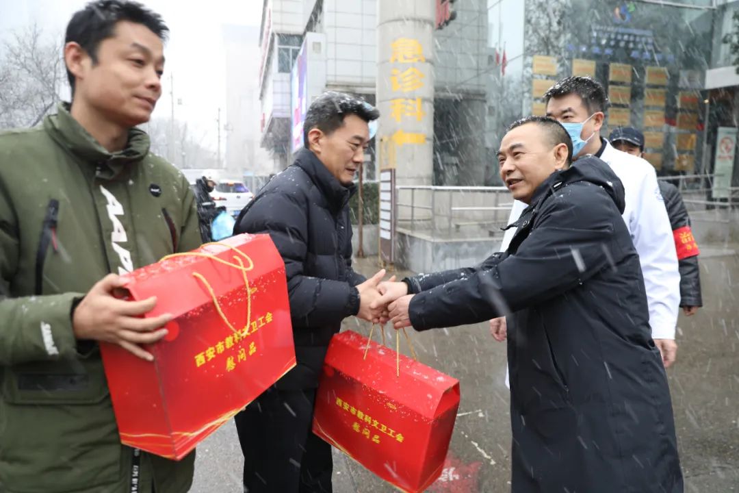 2024年的第一场雪不期而至,1月15日上午,西安市第五医院(陕西省中西医结合医院)院领导班子冒着纷飞的大雪,带着西安市教科文卫工会和医院的殷切关怀开展送温暖活动,将温暖和关爱送到职工心坎里。