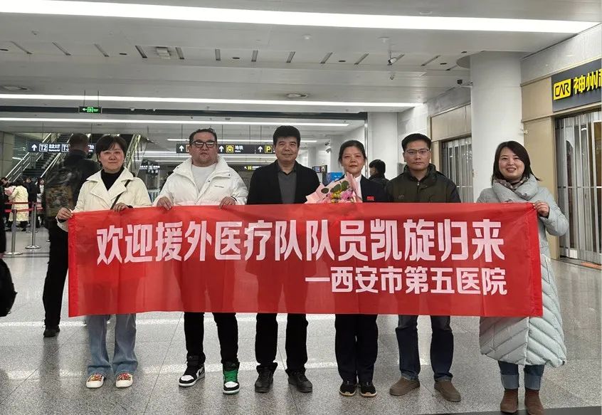 1月14日晚10点左右,第10批援马拉维中国医疗队队员、医院妇产科主治医生张良圆满完成援外任务,平安凯旋。西安市第五医院(陕西省中西医结合医院)副院长黄小强,妇产科主任郑霞,科教科科长张洁及援外队员家属来到西安咸阳机场,热烈迎接张良归来。黄小强副院长代表医院为张良医生送上鲜花,向她致以亲切的问候,衷心祝贺她圆满完成援外任务、平安归来!希望她返回工作岗位后,继续发扬援外医疗队精神,为保障人民群众生命安全和身体健康做出更大贡献。
