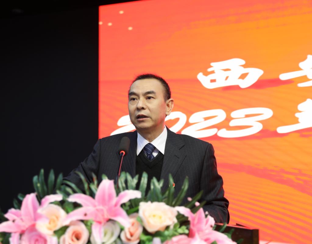 院长郭华作医院2023年工作报告。他指出,2023年医院在市卫生健康委的坚强领导下,在社会各界的大力支持下,在全院干部职工的共同努力下,医院党的建设持续加强,学科建设加快发展,中医药服务能力快速提升,院急救站院外车组(东桃园社区卫生服务站分站)正式开始运行,三甲复审工作顺利完成,西北风湿免疫专科联盟建设巩固加强,人才队伍建设不断强化,科普能力建设有声有色,宣传水平显著增强,医院综合服务能力持续提升,群众就医获得感显著提高。他强调,迈入2024年,我们要借助健康中国建设的契机,加快构建新发展格局,坚持党建引领、学科带动、人才兴院、管理增效,持续深化医院内涵建设,坚持先立后破、革故鼎新,紧扣公立医院高质量发展的决策部署,秉承“三个一切”的服务宗旨,为患者提供更有品质、更有温度、更加安全的医疗服务,为健康陕西建设贡献五院力量。