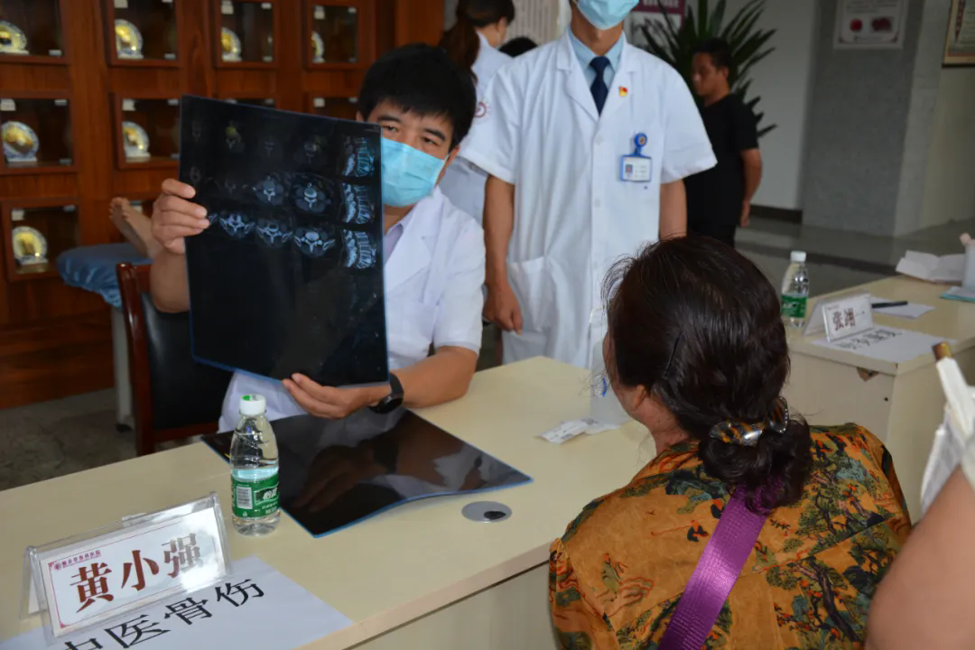 次日上午,勉县骨伤科医院联合西安市第五医院(陕西省中西医结合医院)在门诊大厅开展大型义诊活动。我院副院长黄小强、风湿免疫科七病区主任徐鹏刚、针灸推拿康复科主任张翊一及县骨伤科医院相关专家共同参加活动。此次义诊主要针对风湿性骨病合并多学科疾病,现场为群众进行理疗按摩体验,同时普及中医药健康养生保健知识。心血管一病区主任胡金兰走进内科病区进行查房,在床旁查体后,结合患者主诉、病史,对患者情况进行了充分评估,就下一步的诊疗计划,用药方案等进行了针对性的指导。