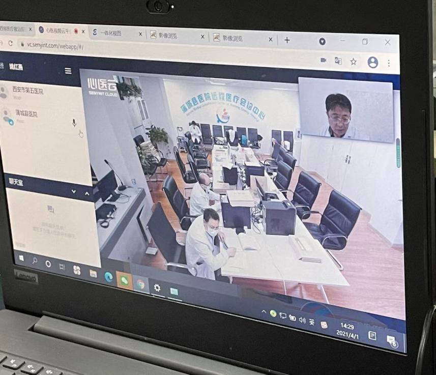 4月初,市五院医务科安排风湿免疫科六病区主任王利通过远程会诊平台,“面对面”为蒲城县医院呼吸内科的患者姚某某进行了视频会诊,使这名患者在家门口就享受到了大医院专家问诊的“待遇”。