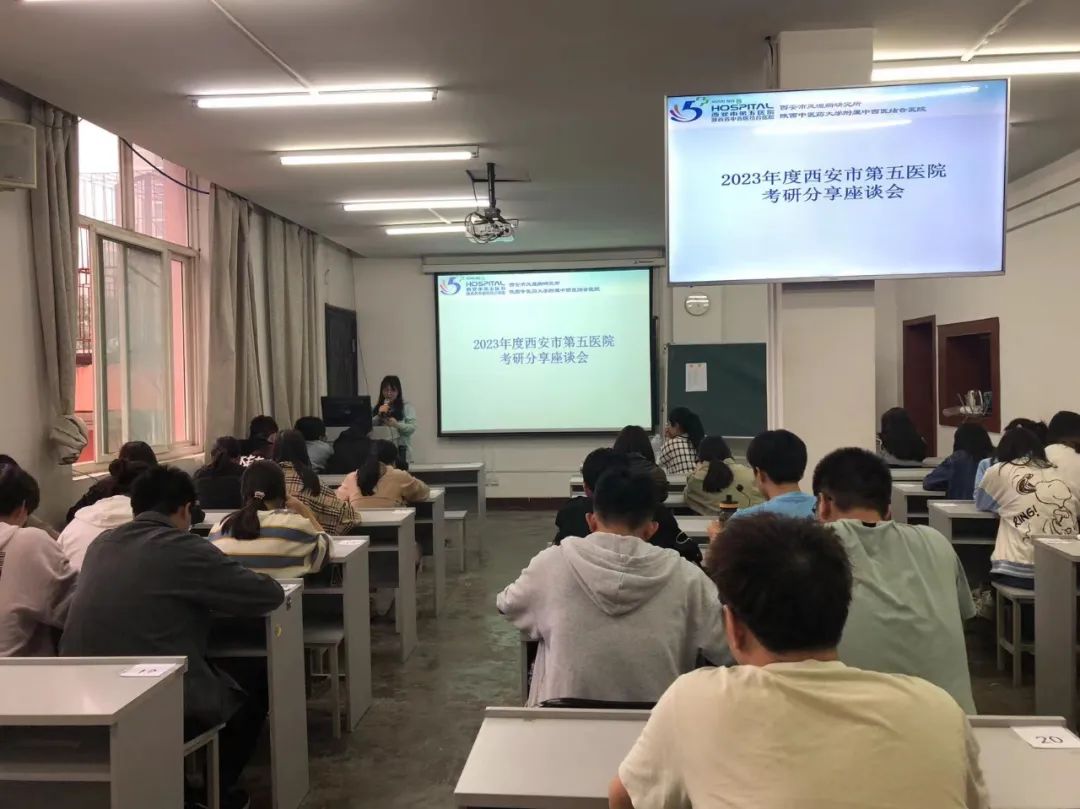 西安市第五医院作为陕西中医药大学第八临床医学院,自2014年开始承担3+2本科教学任务。为配合学校就业指导要求,提高考研录取率,实现学生自身深造愿望,同时带动更多的学生考研,提升我院本科毕业生就业质量。5月26日,市五院科教科组织开展2023年度考研动员交流会。