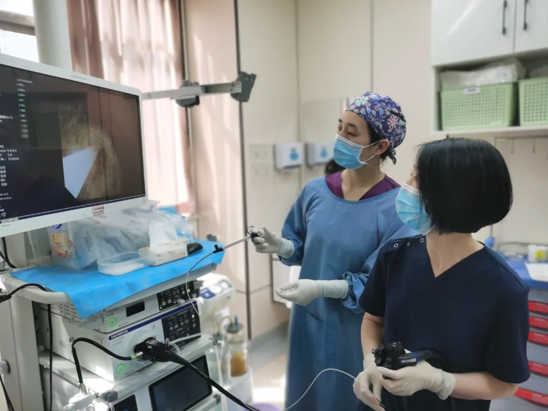 大多数患者对传统胃肠镜检查都很恐惧,在检查过程中也有因剧烈呕吐而导致食道撕裂的风险,为此,科室倡导舒适化无痛胃肠镜检查,患者可在睡眠中完成内镜检查。此外,科室还制定了“检查+治疗”的一体化个体诊疗方案,与患者充分沟通,并根据患者的病情制定精准化的个体诊疗方案,极大地节省了患者的就医时间,使患者享受到更多舒适化的优质医疗体验。此外,由于麻醉药物的特殊作用,部分接受无痛胃肠镜手术的患者不可避免地会出现麻醉药物反应,表现为恶心呕吐、头晕等症状,检查舒适感降低,五院消化内科通过穴位注射来进行治疗,显著降低了患者在无痛内镜检查后的麻药不良反应。