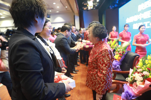 在拜师仪式上,任宝娣、白琳给指导老师王素芝双手奉上鲜花、呈递拜师誓词,王老则赠送继承人中医典籍,寄予传承中医药文化的厚望。最后全体继承人高声诵读拜师誓词:中华医学,肇端岐黄。前贤推广,渊海汪洋……