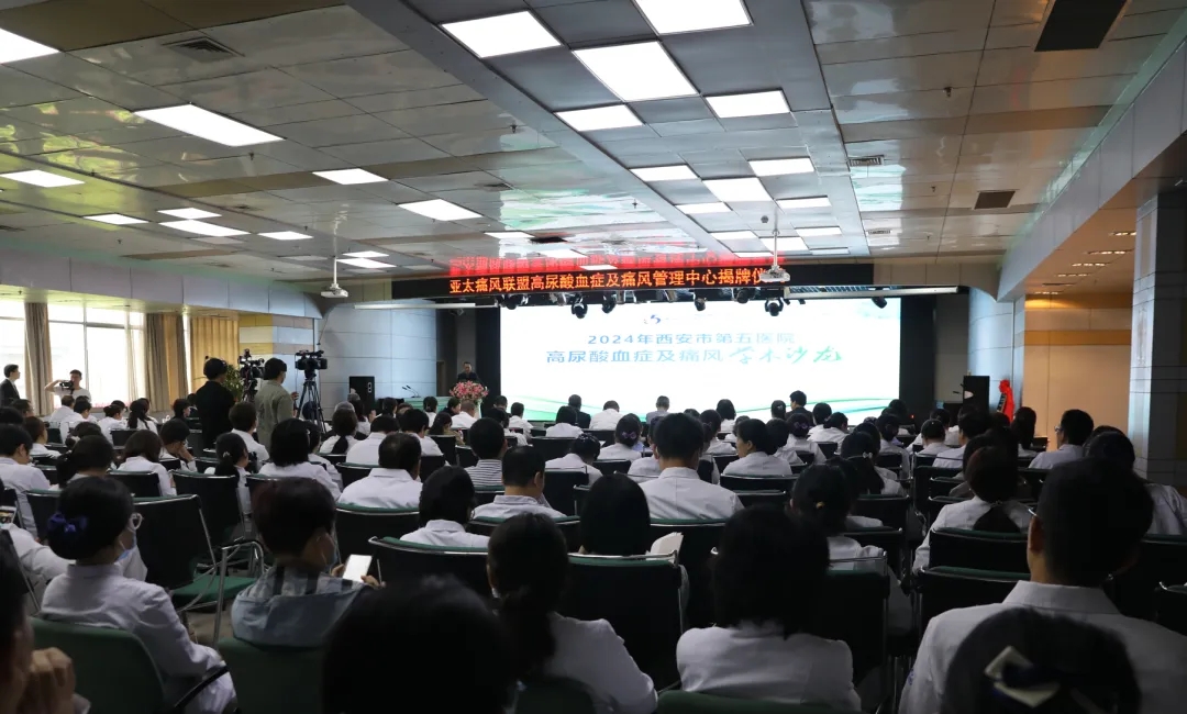 西安市卫生健康委员会副主任丁力在揭牌仪式的讲话中指出,西安市第五医院(陕西省中西医结合医院)成立亚太痛风联盟高尿酸血症及痛风管理分中心,这是西安市第五医院(陕西省中西医结合医院)推进健康西安行动、促进中医药传承创新的重要成果,也体现了医院在痛风疾病诊疗方面的突出实力。希望西安市第五医院(陕西省中西医结合医院)继续致力于整合中医医疗及科研资源,推动中西医专科特色建设。