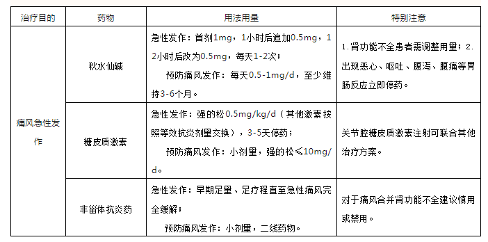西医治疗痛风,急性期以抗炎止痛为主,选用非甾体类抗炎药、糖皮质激素及秋水仙碱。