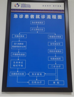 门诊1-4楼均设有门诊患者就诊流程,急诊科设有急诊患者就诊流程。
