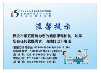 西安市第五医院为进一步改善医疗服务,切实方便患者就医,不断满足群众的就医需求,全年实行无假日门诊,门诊各诊室、医保办、导医台、磁共振室(时间:8:00-17:30);急诊科、发热门诊、收费处、检验科、超声室、放射科、CT室:(时间:24小时)。中午开设午间门诊,针灸推拿康复科周一至周五开设夜间门诊(时间:17:30—20:00)。疫情期间病房谢绝探视。