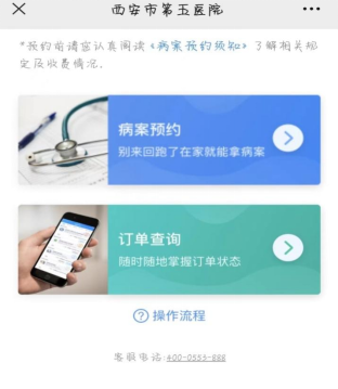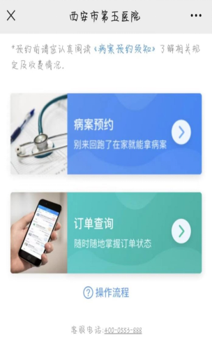 10.申请预约后,关注“西安市第五医院”公众号——“患者服务”——“病案预约”——“订单查询”