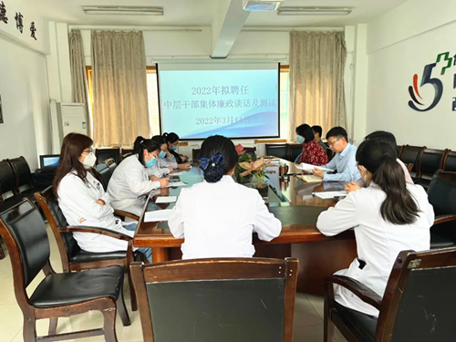 2022年4月1日上午,市五院召开专题会议,学习传达市卫生健康委党委书记樊军荣在2021年度全委系统基层党建和党风廉政建设述职评议工作会议上的讲话精神,并对院领导班子和党支部书记党建和党风廉政建设进行述职评...