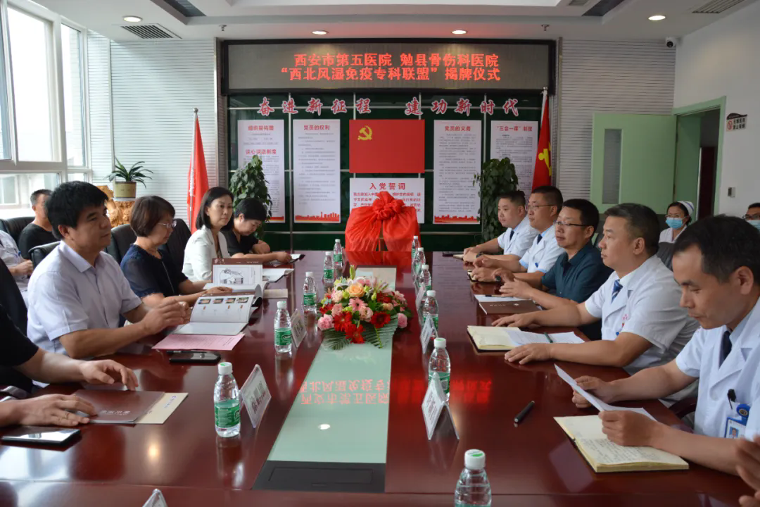 7月5日,西安市第五医院(陕西省中西医结合医院)与勉县骨伤科医院“西北风湿免疫专科联盟”签约揭牌仪式在勉县骨伤科医院顺利举行。西安市第五医院(陕西省中西医结合医院)副院长黄小强以及专家团队、勉县卫生健康局副局长雷志江、骨伤科医院院长陈鹏以及医院领导班子、相关科室负责人共同参加签...