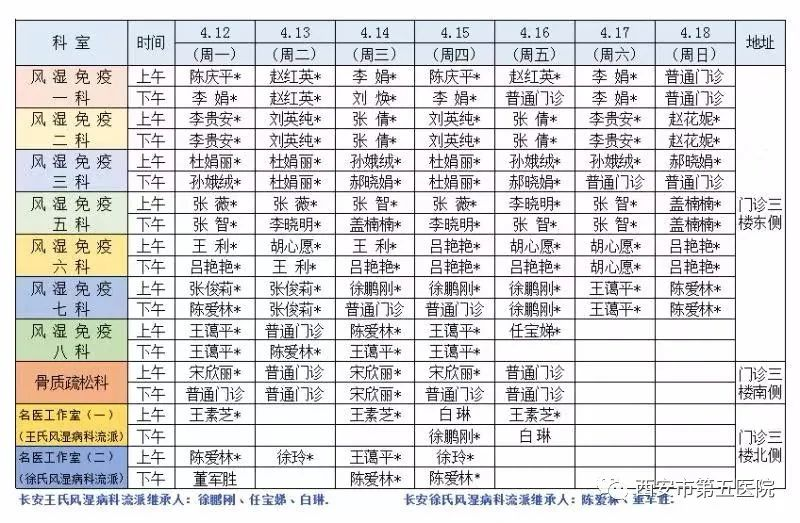 西安市第五医院门诊医师出诊表(4月12日-4月18日)