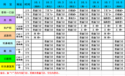 西安市第五医院国庆节门诊医师出诊表(10月1日-8日)