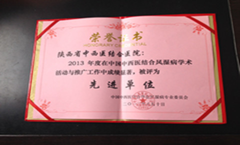 陕西省中西医结合医院获 “2013年度中国中西医结合风湿病学术活动与推广工作先进单位”