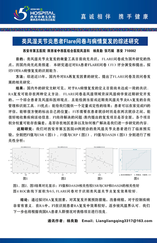 2015年全国风湿病学学术会议壁报交流论文-类风湿关节炎患者问卷与病情复发的综述研究