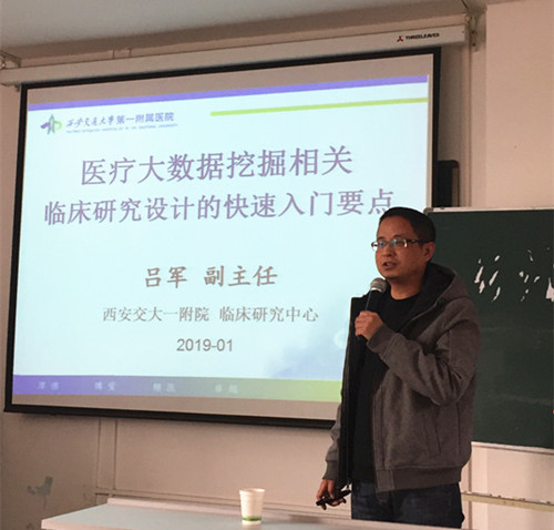 1月14日下午,西安交通大学第一附属医院吕军教授应邀来我院为各科室科研骨干医护人员作了题为《医疗大数据挖掘研究设计快速入门要点》的专题讲座。