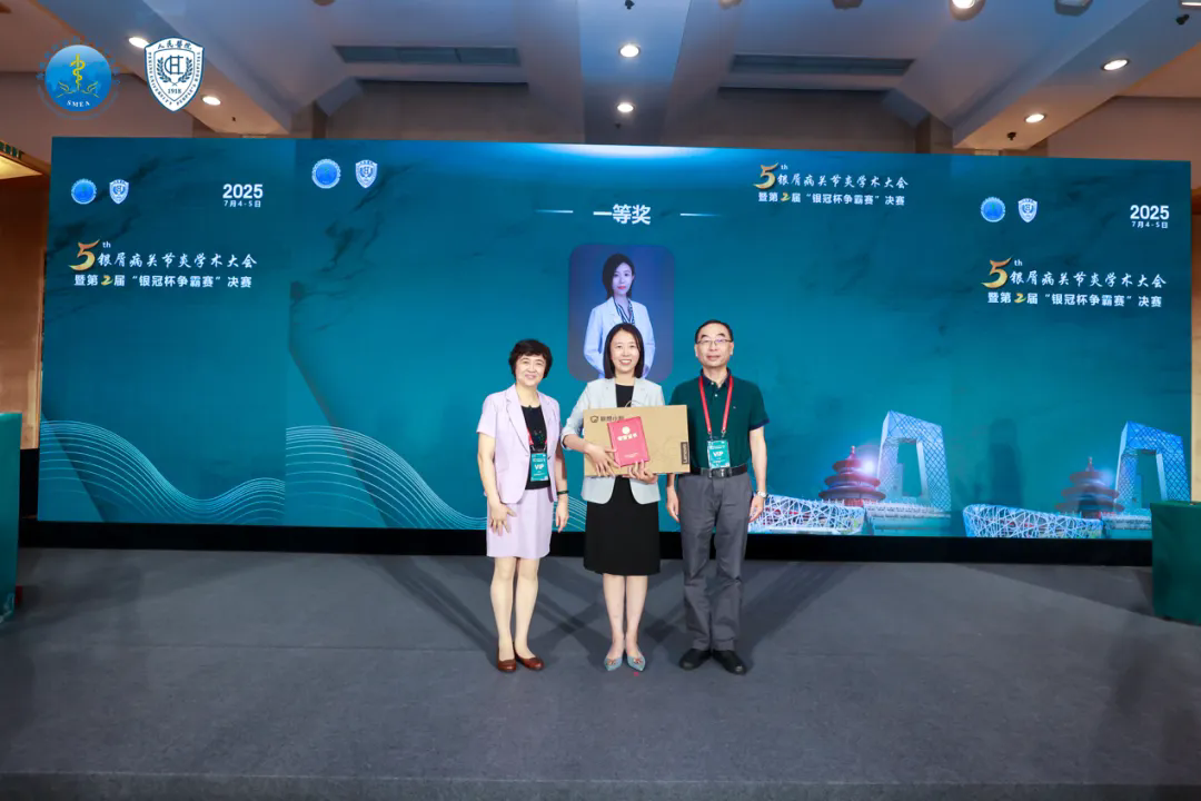 紧随其后,在2025年7月4日于北京举行的、由海峡两岸医药卫生交流协会风湿免疫病学专委会主办的第二届“银冠杯争霸赛”全国决赛中,西安市第五医院风湿免疫科五病区青年才俊鲍蕴琦医生再创佳绩!“银冠杯争霸赛”聚焦提升医生对银屑病关节炎的早期识别与规范诊疗能力,赛事规格高、竞争异常激烈,从全国范围内征集病例,经严格初筛后仅36份入围初赛,初赛阶段经过多轮角逐,最终仅有12名顶尖选手晋级全国决赛。在强手如林的决赛舞台上,鲍蕴琦医生带来了一例银屑病关节炎合并克罗恩病的复杂病例,其演讲思路缜密清晰、重点突出、分析深入透彻,赢得了评委专家们的一致高度评价,最终力压群雄,摘得全国一等奖桂冠。这不仅是对鲍蕴琦医生个人能力的高度肯定,更是对我院在银屑病关节炎领域领先的临床与学术水平的权威认可!