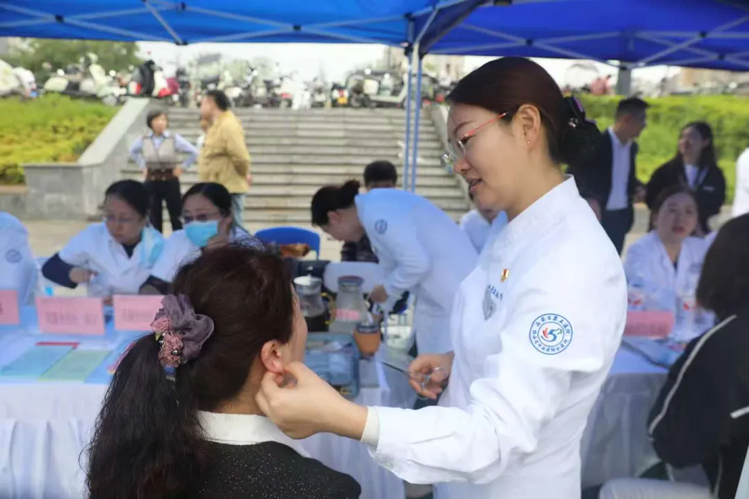 上午9时左右,现场已然人头攒动,前来咨询、问诊的市民络绎不绝。西安市第五医院的专家们以饱满的热情接待每一位就诊者,不仅提供专业的健康咨询与指导,还积极普及医学常识和疾病防治知识。他们认真倾听患者对病情的陈述,耐心询问患者的困扰与诉求,运用望闻问切的传统中医诊断方法,由表及里、精准判断,针对不同病情量身定制就医方案,提供细致的健康指导。同时为有需求的群众开展了耳穴埋豆、核桃灸等特色中医操作治疗,现场群众体验热情高涨。此次义诊,医院还贴心地为群众准备了具有中医特色的代茶饮,赢得了群众的一致赞誉。