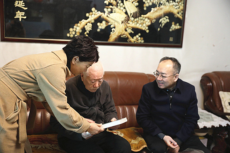 2021年2月5日上午,我院院长、党委副书记冯占伟、副院长颜伟生、纪委书记周圣千、副院长姚智、副院长黄小强及相关科室负责人,携带慰问信、慰问金,先后前往五院家属院看望离休老干部陈文启、马长生、商凤楼及原党委书记李建宁等退休老同志。亲自把慰问信、慰问金送到老同志手上,感谢他们为医院所作的贡献,高度赞扬他们是医院的宝贵财富,虽然退居二线了,但仍然关心着医疗事业,为我院工作献计献策,希望他们继续发挥余热,老有所乐,老有所为。并祝福老同志健康长寿,把晚年生活过得更有意义。