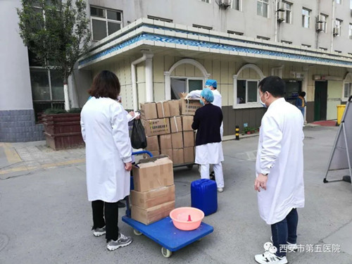 按照党委书记李建宁及副院长姚智的要求,切实利用好社会各届的爱心捐赠,把上级组织和社会各届对医务工作者的关心、关爱传递给每一位职工。3月24日上午,在药剂科王吉利主任的带领下,药库及相关部门人员兵分两路,为全院所有部门提供捐赠消毒物资84消毒液和酒精消毒液上门发放服务。两路人员一边登记核对数量,一边还不忘叮嘱所有领用部门做好相应消毒物资的保存、配比、使用安全工作。