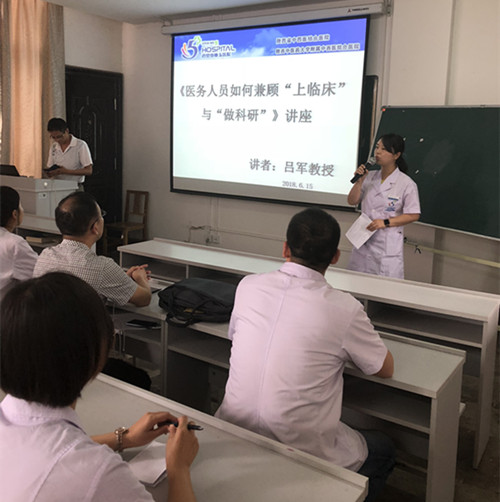 6月15日下午,由市五院科教科组织,特邀西安交通大学临床研究中心副主任、副研究员吕军,在教学楼为医务人员带来了一堂生动幽默的科研讲座。