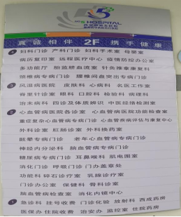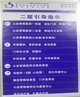 1、门诊1-4楼各楼层均有各科室名称、位置及指引标识