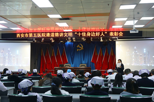 在我们挥手告别了景色迷人的秋天,轻轻踏进了冬天的时节里,11月16日下午,西安市第五医院召开了“遵道德讲文明十佳身边好人”表彰大会,工会副主席孙瑾及工会小组长参加了这次表彰大会。 为深入贯彻落...