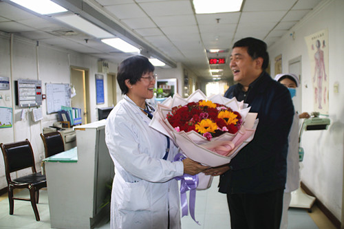 在这鲜花盛开的美好时节,在“五一”国际劳动节来临之际,4月30日上午,市五院院长张新昀、党委书记李建宁,副院长、工会主席颜伟生和工会副主席孙瑾及工作人员,共同走访慰问市级劳模张秋萍,致电慰问因事外出的市劳...
