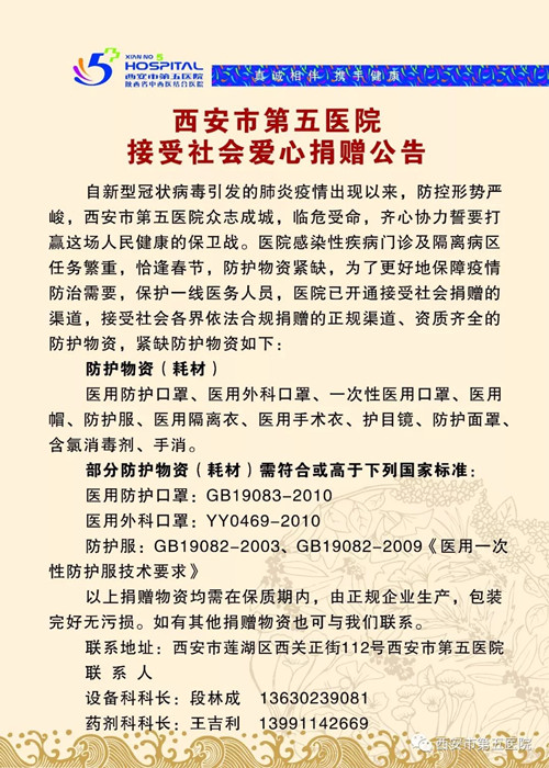 西安市第五医院接受社会爱心捐赠公告