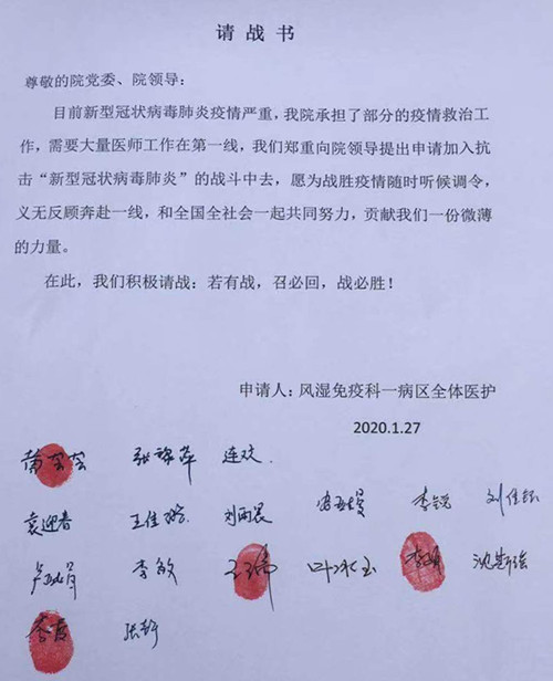 庚子鼠年,新年的钟声还未敲响,新冠肺炎的阻击战号角就已经吹响了,西安市第五医院的白衣天使纷纷请命,奔赴前线,在这场没有硝烟的战场上履行自己的天职——救死扶伤,在危险面前他们没有退缩,请战书上的签字和手...