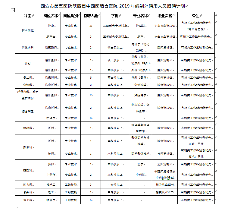 西安市第五医院2019年编制外聘用人员招聘公告